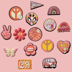Minimalist Boho Hippie Peace Shoe Charms: Retro Flower, Peace Sign & Groovy Elements for Bohemian Footwear Croc Shoe Decoration
