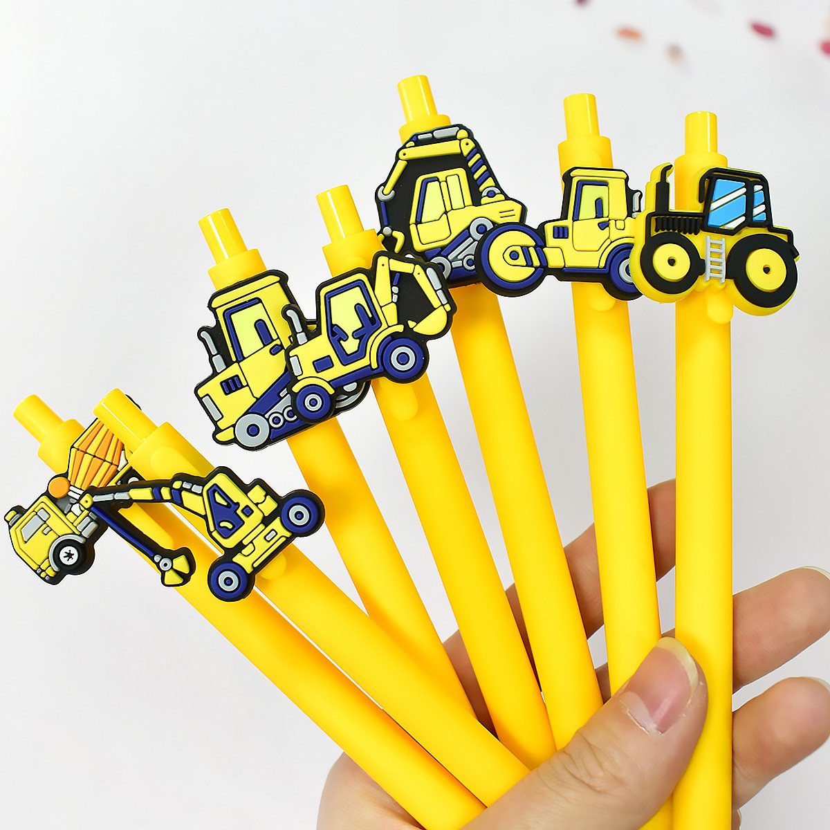 Novelty Construction Truck Topper Pens, Cute Cartoon Excavator Forklift Gel Pens, Fun Stationery for Students Birthday Party Favors