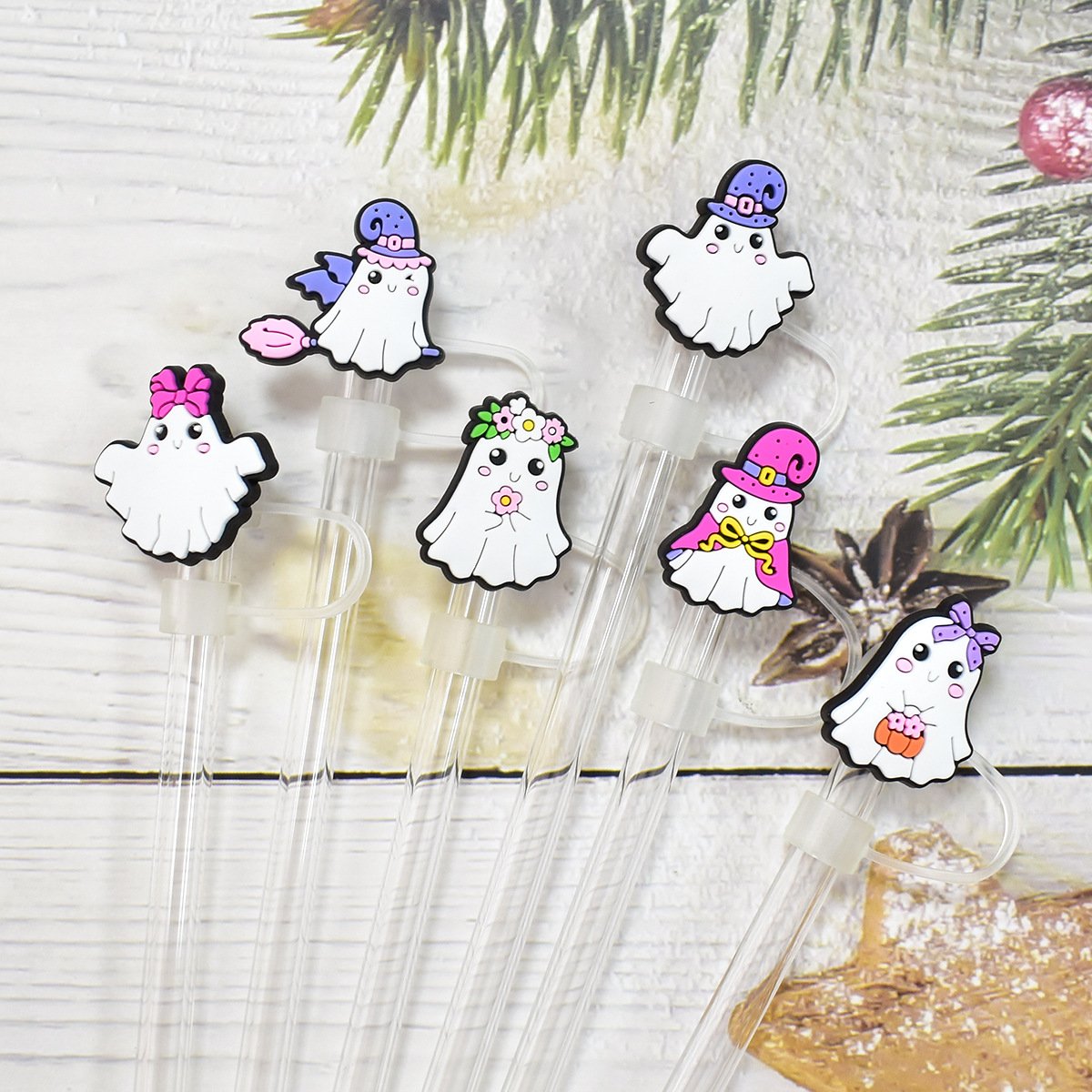 Alluring Halloween Ghost Straw Toppers