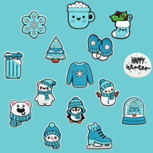 Cozy Winter Cartoon Shoe Charms for Clogs - Cute Snowman, Penguin & Snowflake Decorations for DIY Footwear Customization