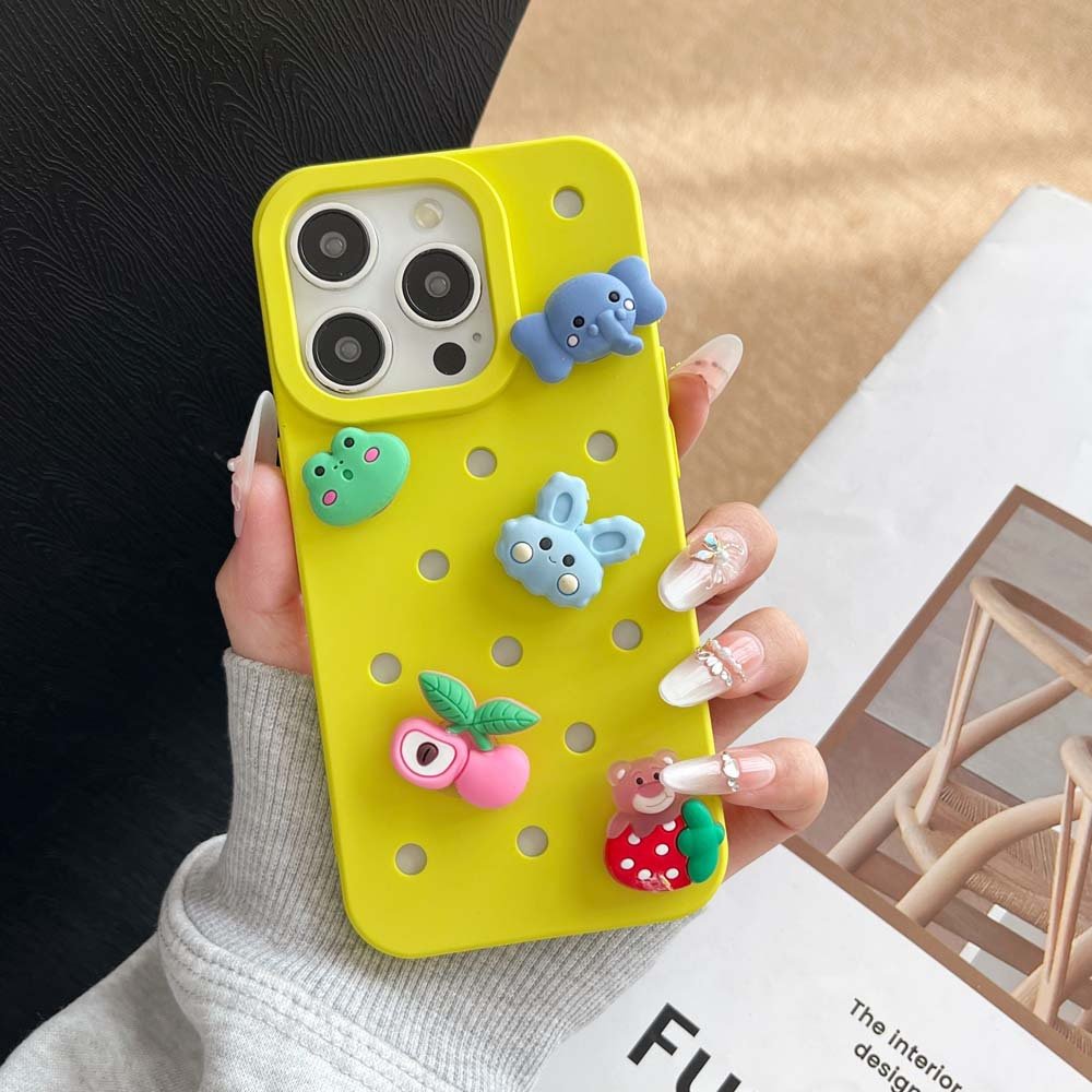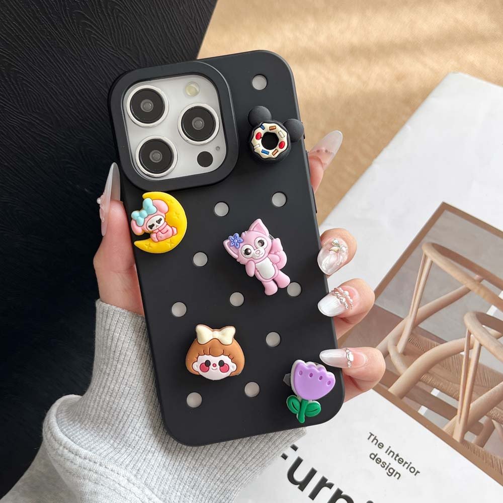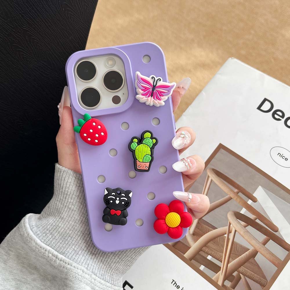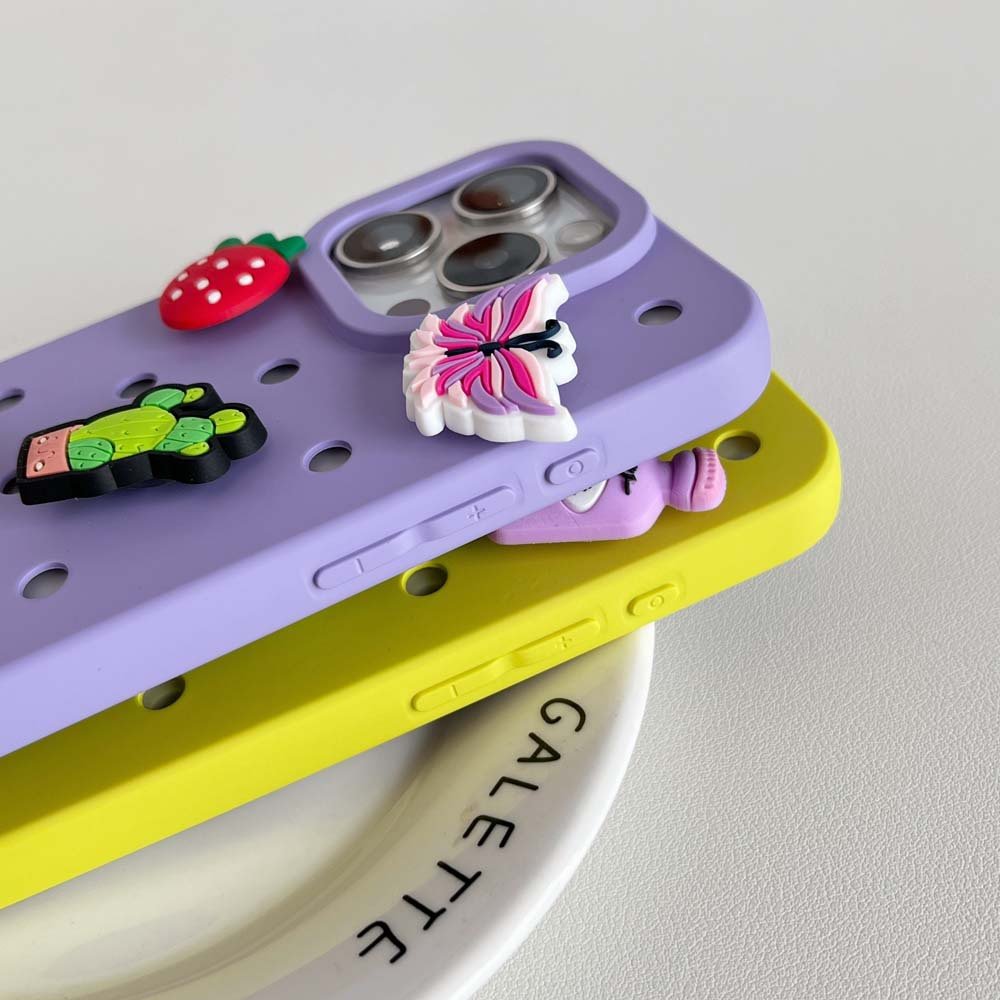 Beyond being shoe accessories, PVC shoe charms are breaking scene limitations and gradually penetrating more consumer sectors—with holey phone case accessories emerging as one of the most promising application directions with explosive potential in recent years. Holey phone cases have rapidly gained popularity among young consumers thanks to their core selling point of “DIY customization.” The dense small holes on their surface bear striking similarities to the structure of Crocs, naturally adapting to various snap-on accessories and providing an excellent cross-border carrier for PVC shoe charms.
