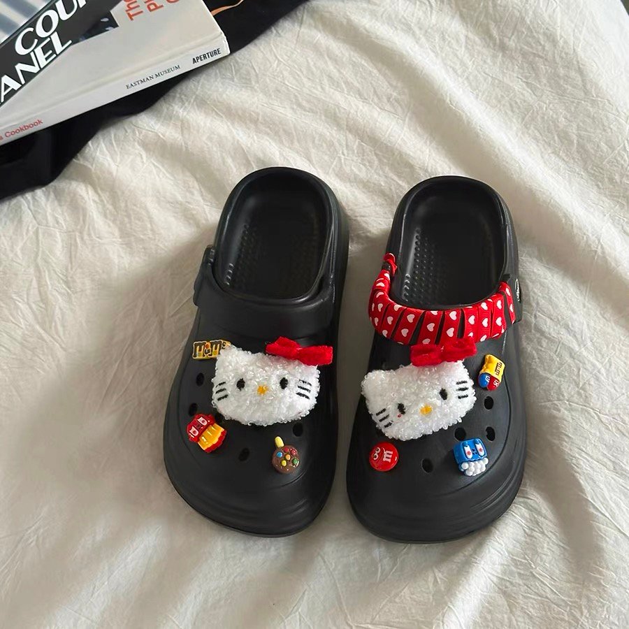 Hello Kitty-Themed Black Croc Clogs Adorned with Cute Shoe Accessories